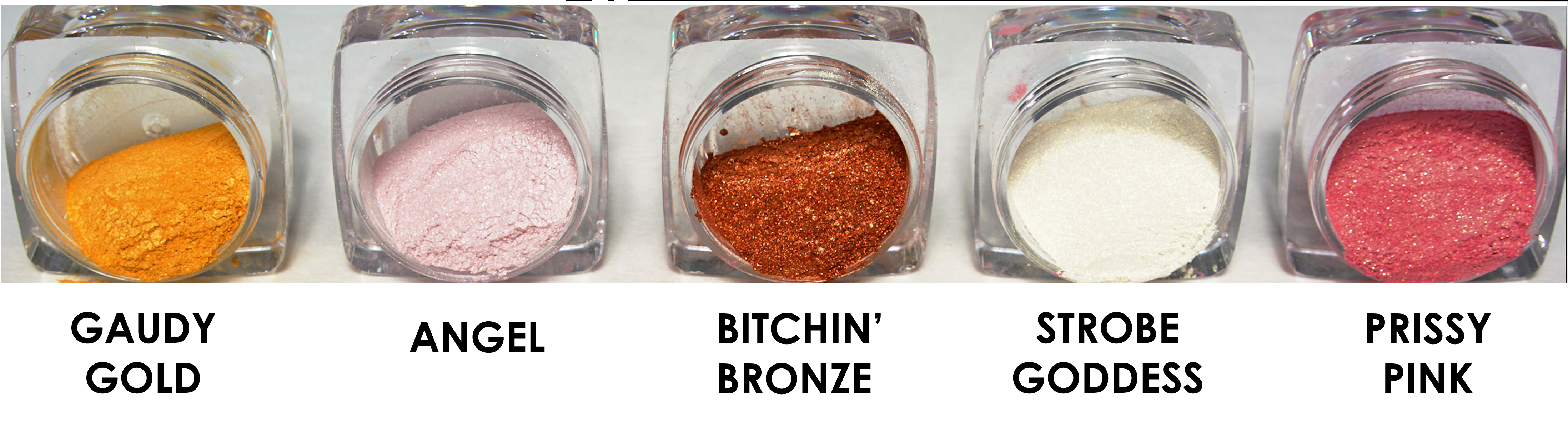 BITCHIN’ BRONZE /PRISSY PINK / GAUDY GOLD/ ANGEL / STROBE GODDESS/ CHOCOLATE ICE /LIQUID PEARL
